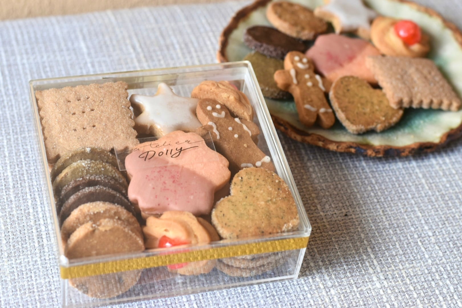 『どり〜のクッキー詰め合わせBOX』 ¥2,300(tax in) ひとつひとつ丁寧に焼いた 店主こだわりのサブレ9種類入り。 なかなか会えない遠方のご家族やご友人の贈り物、 ご自宅でゆったり自分へのご褒美にいかがでしょうか。 日々お世話になっている大切な方へのギフトにもおすすめです。 【各種クッキー】 ・シナモンシュガー ・アールグレイ ・クッキーマン(バターサブレ) ・ほうじ茶ホワイトチョコ ・ショコラ ・キャラメル ・レモンクッキー ・チェリーコンフィ ・ストロベリー 内容量 約250g 【賞味期限】 商品の裏に記載。 到着から2週間程度となります。 ※保存料等使っておりませんので、お日持ち短く設定しております。開封後はお早めにお召し上がりください。 《原材料に含まれるアレルギー物質》 小麦、卵、乳成分、アーモンド、くるみ、大豆 《配送について》 3/18(水)発送。ゆうパックでのお届けです。 別途、送料を頂戴しております、 商品のプライス下のご案内からご確認ください。 ※ご注意※ ・ご希望の受け取り時間帯ございましたらご指定ください。 ・お届けの地域によって商品到着のお日にちが1〜2日ほど変わりますのでご了承ください。 ・2点以上ご注文でお届け先が異なる場合には、お手数ですがそれぞれ1件ずつ購入画面からご注文をお願い致します。 ・複数点ご購入により送料に変更がある場合はお客様にご案内後、別途ご請求させて頂きます。 ・丁寧に梱包しておりますが、お届けした商品に万一不良があった場合は配送料弊社負担にて早急に商品を交換させていただきます。 (焼き菓子は割れが生じやすく、原型をとどめない破損のみ不良品とさせていただきます) 商品到着後3日以内にご連絡くださるようにお願い申し上げます。 ・ご注文後のキャンセル・変更は承っておりません。 ・ご不明点、ご相談はお電話又はインスタグラムにて承っております。 お問い合わせ:atelier どり〜 (兵庫県神戸市中央区中山手通8-3-9 tel:080-5723-0601) 11:00-18:00